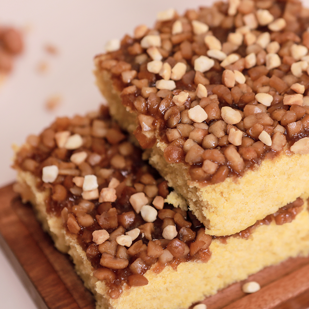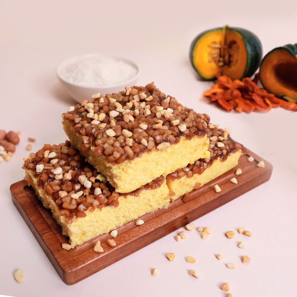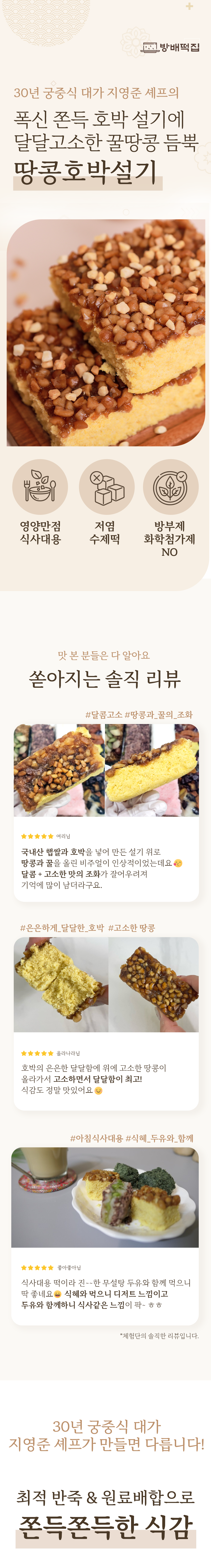 폭신 쫀득 호박 설기에 달달고소한 꿀땅콩 듬뿍 땅콩호박설기를 식사 대용으로 즐겨보세요.